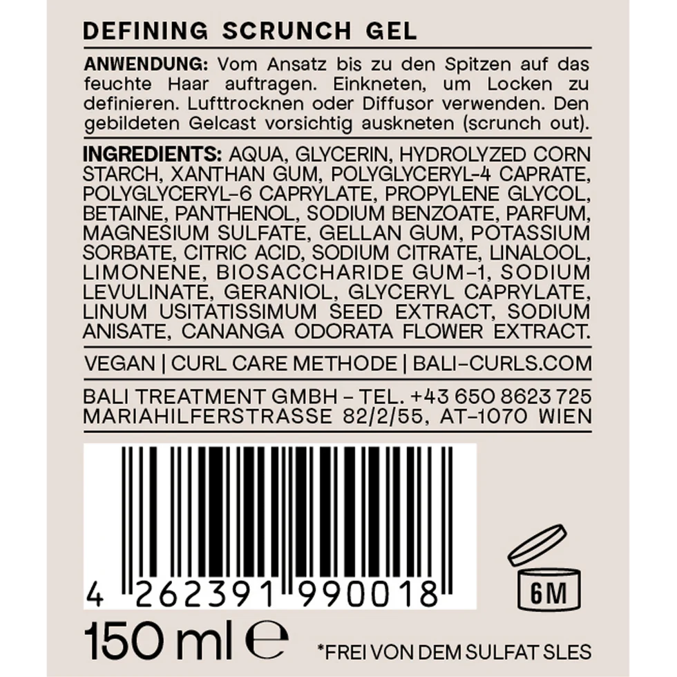 First, work a curl cream or a leave-in, like our HYDRATING CURL CREAM, into your hair. Section your curls and apply the gel to wet or damp hair. Add as much gel as your hair needs. To enhance your curls, scrunch from the bottom up; for more definition of individual strands, you can also use the finger coiling/rolling method. Let your curls air dry or use a diffuser. Once completely dry, you can break the gel cast with a hair oil or serum to seal your curls. Our tip: Style your hair while it's wet to reduce frizz, increase definition, and lock in moisture for longer.